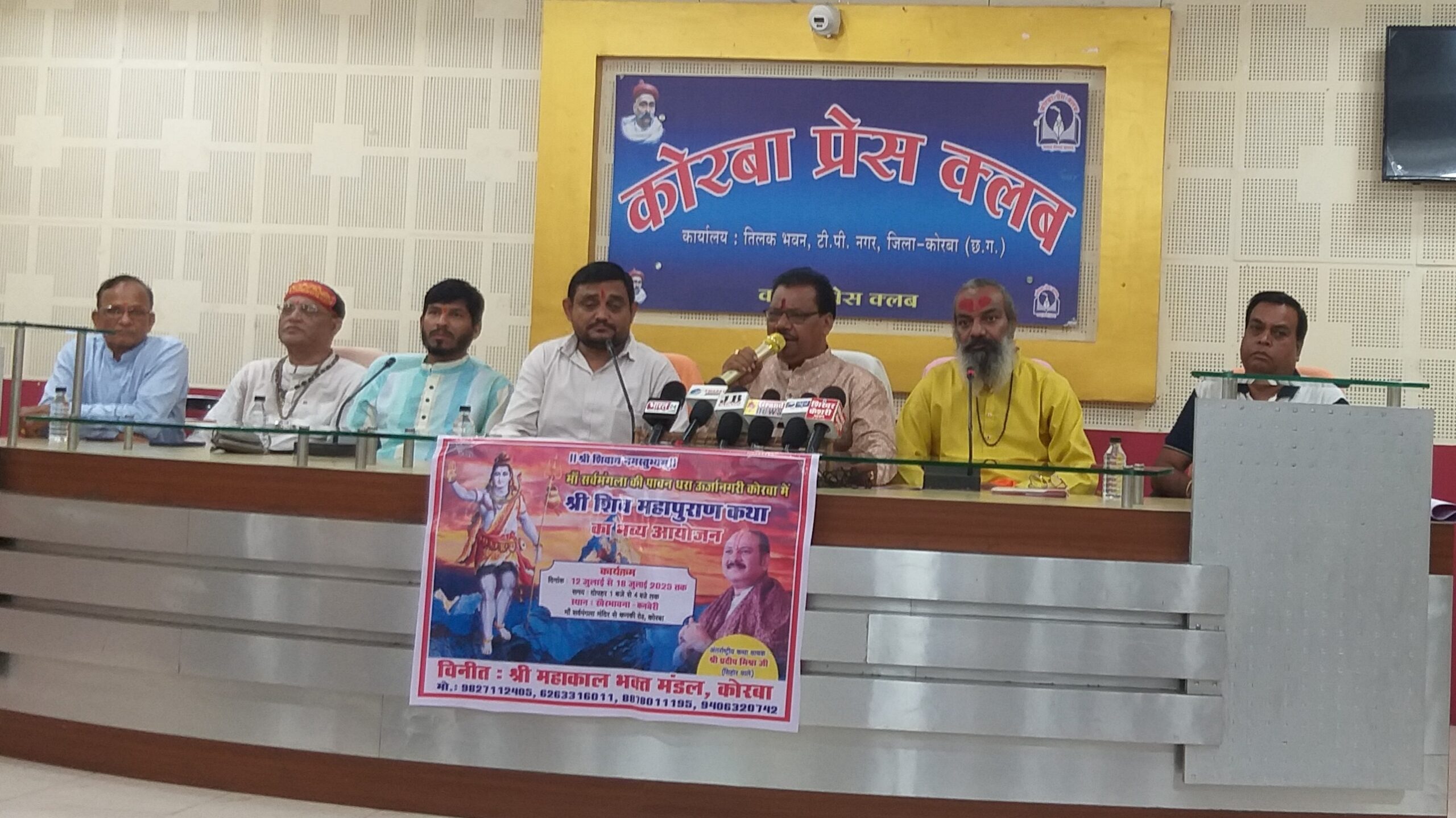 श्री शिव महापुराण कथा को सुचारू रूप से सम्पन्न कराने हेतु एक पंजीकृत समिति का गठन किया गया जिसका नाम सर्वसहमति से श्री महाकाल भक्त मण्डल कोरबा रखा गया एवं श्री महाकाल भक्त मण्डल कोरबा के आय-व्यय का लेखा-जोखा में पारदर्शिता बनी रहे इसके लिए बैंक में खाता खोला गया है। श्री महाकाल भक्त मण्डल कोरबा के गठन का मुख्य उद्देश्य को विस्तार पूर्वक बताते हुए कहा गया के भारतीय जीवन दशर्न में अलगाव वाद, भेदभाव, अस्पृश्यता को कभी स्थान नहीं मिला लेकिन विदेशी अताताईयों के ढ़ाई हजार वर्षो में संघर्षो के दौर में एक समय ऐसा भी आया जब तलवार के बल पर धर्मांतरण के लिए भारतीय जन को विवश किया गया, जो धर्म पर अडिग रहे उनको मौत के घाट उतारा गया, जो धर्म से विचलित हुए उनका धर्म परिवर्तन किया गया। बहुत सारे लोग ऐसे थे जो अपना धर्म परिवर्तन नहीं किया उनका धर्म भंग करने के लिए उन्हे मैला उठाने का काम कराया गया। इसी के साथ भारत में ऊच-नीच, जाति-भेद एवं अस्पृशता का भाव पैदा हुआ और अपने प्रिय जनता को वोट बैंक के नाम पर ऊच-नीच की श्रेणी में रखकर उन्हे पिछड़ा ही रखा गया। आज वर्तमान में सनातनी अपने मार्ग से भटक कर अपनी संस्कृति पूजा पाठ को भूल कर धर्मांतरण का रास्ता अपना रहे है। समाज के इस धर्मांतरण रूपी कोढ़ को जड़ से समाप्त करने की आवश्यकता है इस बुराई से बचने के लिए लोगो को धर्म के प्रति आस्था जागृत करने धार्मिक आयोजनो के माध्यम से अपने देवी-देवताओं की पूजा-पद्धिती से जोड़ने का प्रयास इस समिति का मुख्य उदेश्य है ।