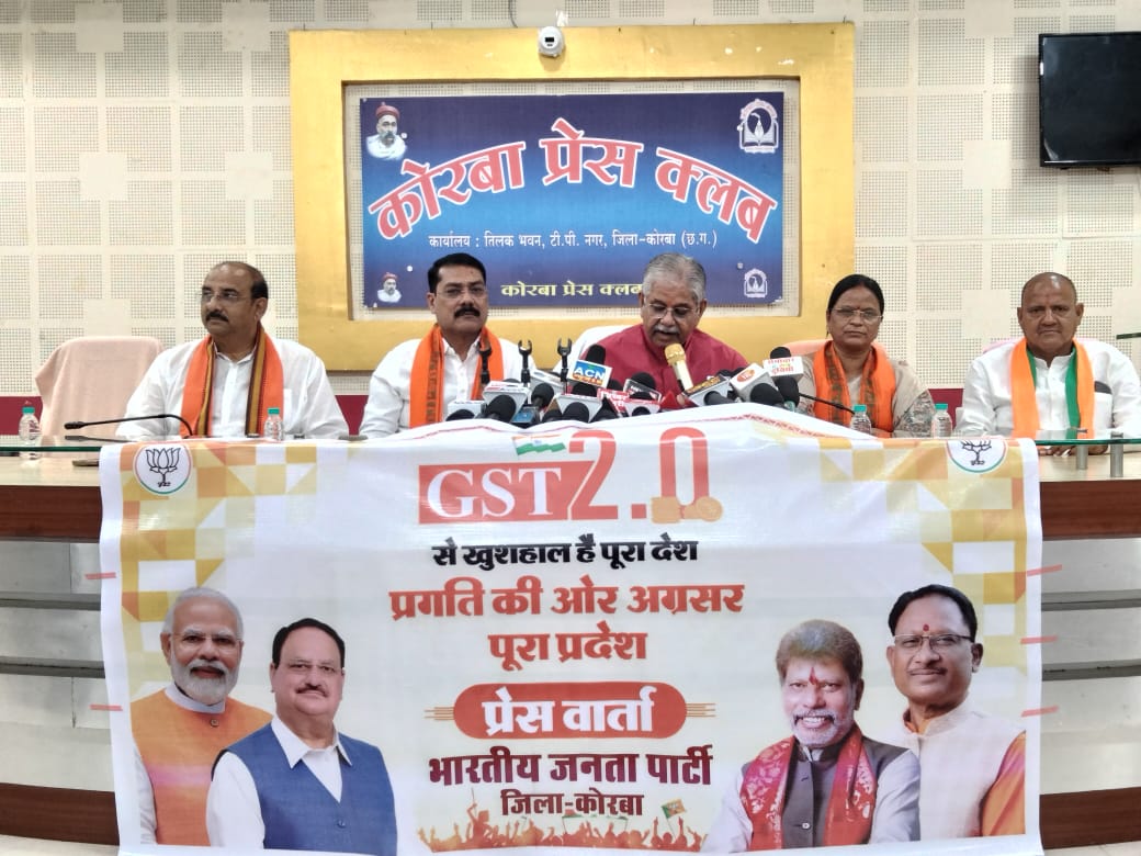 प्रेस क्लब कोरबा तिलक भवन में आयोजित प्रेस वार्ता में माननीय विधायक धरमलाल कौशिक ने जीएसटी 2.0 के विषय में विस्तारपूर्वक जानकारी दी। इस अवसर पर भाजपा जिलाध्यक्ष गोपाल मोदी, महापौर संजू देवी राजपूत, निवर्तमान जिलाध्यक्ष राजीव सिंह एवं पूर्व महापौर जोगेश लांबा भी उपस्थित रहे।