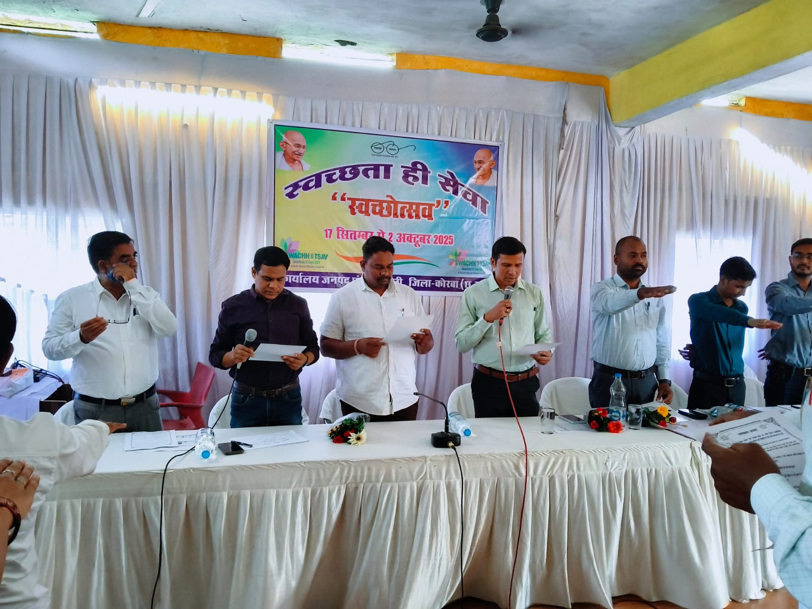 राष्ट्रीय स्वच्छ भारत मिशन के अंतर्गत स्वच्छता ही सेवा अभियान के तहत आज जनपद पंचायत पाली में सीईओ जिला पंचायत दिनेश कुमार नाग ने अधिकारी-कर्मचारियों, जनप्रतिनिधियों और ग्रामीणों को स्वच्छता की शपथ दिलाकर स्वच्छोत्सव 2025 का शुभारंभ किया। इस अवसर पर सभी उपस्थित जनप्रतिनिधियों,अधिकारी कर्मचारी, ग्रामीण जनों ने संकल्प लिया कि “न गंदगी करूंगा – न दूसरों को करने दूंगा।”स्वच्छता संदेश का वाचन कर जिला स्तर पर स्वच्छता की भावना को जन-जन तक पहुँचाने का आह्वान किया गया। कार्यक्रम में उपसंचालक पंचायत, मुख्य कार्यपालन अधिकारी जनपद पंचायत, जिला समन्वयक स्वच्छ भारत मिशन ग्रामीण, विभिन्न विभागों के अधिकारी-कर्मचारी, ग्राम पंचायतों के सचिव, सरपंच तथा बड़ी संख्या में ग्रामीण नागरिक शामिल हुए। सीईओ श्री नाग ने अपने संबोधन में कहा कि स्वच्छता केवल अभियान नहीं, बल्कि जीवनशैली है। उन्होंने सभी से घर, कार्यालय,सार्वजनिक स्थल और पर्यावरण को साफ रखने का संकल्प दोहराया और लोगों से स्वच्छता के प्रति जागरूक रहने का आग्रह किया।उल्लेखनीय है कि जिले में स्वच्छता पखवाड़ा 17 सितंबर से 2 अक्टूबर 2025 तक मनाया जाएगा, जिसमें स्वच्छता संबंधी विभिन्न कार्यक्रम आयोजित किए जाएंगे। इन कार्यक्रमों का उद्देश्य जनभागीदारी से स्वच्छता को बढ़ावा देना, कचरा प्रबंधन, जल संरक्षण, स्वास्थ्य जागरूकता तथा पर्यावरण संरक्षण को जीवन का हिस्सा बनाना है।