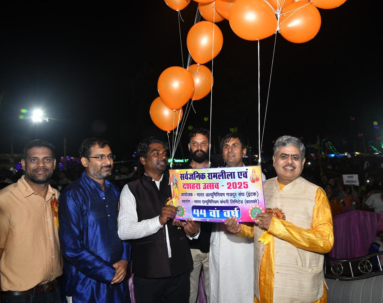 विजयादशमी के पावन अवसर पर बालकोनगर के रामलीला मैदान में भगवान श्रीराम, माता सीता एवं हनुमान जी की भव्य झांकियों और रावण-दहन कार्यक्रम का आयोजन हर्षोल्लास और श्रद्धा के साथ किया गया। पूजा-अर्चना की शुरुआत बालको के मुख्य कार्यकारी अधिकारी एवं निदेशक श्री राजेश कुमार ने की। इस अवसर पर सीईओ सहित बालको परिवार के अन्य सदस्यों ने भगवान श्रीराम की आराधना कर कंपनी और क्षेत्र की निरंतर प्रगति एवं समृद्धि की कामना की। बालकोनगरवासियों ने बालको सार्वजनिक विजयादशमी समिति द्वारा आयोजित इस भव्य उत्सव में उत्साहपूर्वक भाग लिया।
