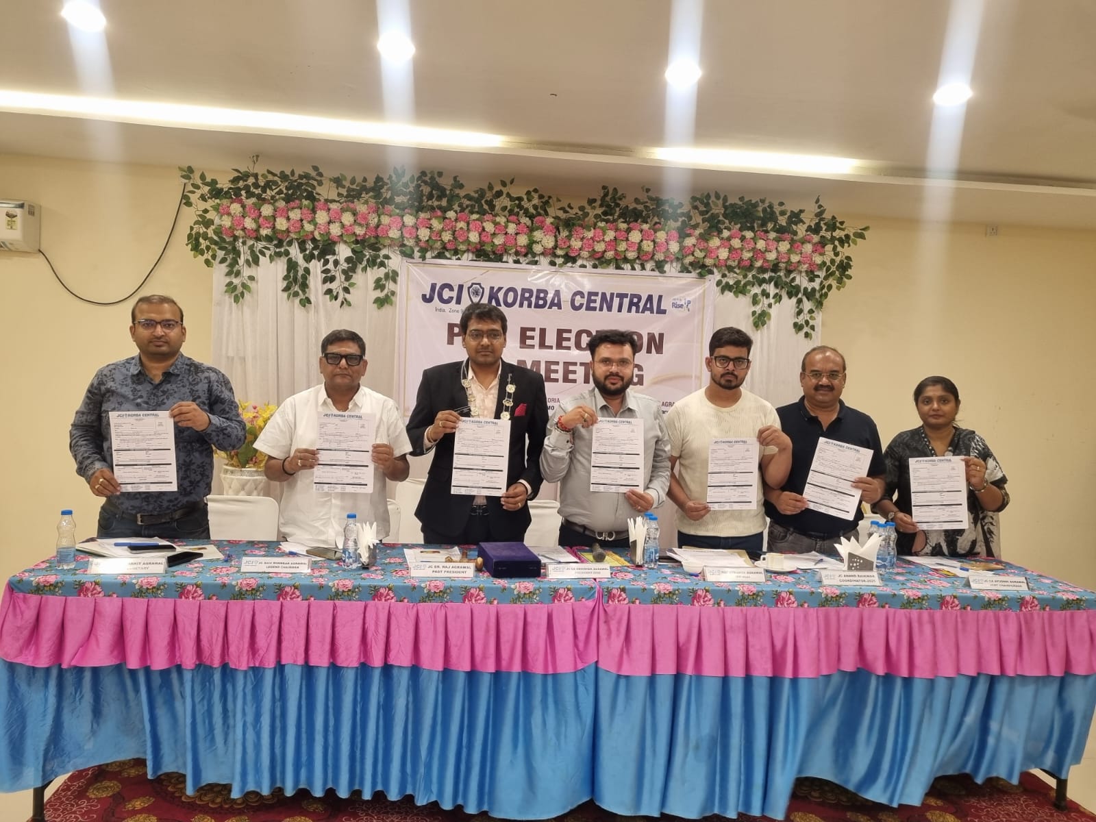 जेसीआई कोरबा सेंट्रल की प्री-इलेक्शन जनरल बॉडी मीटिंग कावेरी रेस्टोरेंट में सफलतापूर्वक सम्पन्न हुई । इस बैठक में आगामी वर्ष 2026 के लिए संस्था की नई कार्यकारिणी के निर्वाचन की प्रक्रिया पर विस्तृत चर्चा की गई एवं नामांकन फॉर्म का विमोचन किया गया। संस्था के सचिव सी.ए. अंकित अग्रवाल ने बताया कि परंपरानुसार संस्था के आई.पी.पी. जेसी उत्कर्ष अग्रवाल को मुख्य चुनाव अधिकारी नियुक्त किया गया और सहायक चुनाव अधिकारी के रूप में जेसी सन्नी मित्तल, अंकित टमकोरिया व आनंद अग्रवाल नियुक्त हुए। चुनाव तिथि 11 नवम्बर निर्धारित की गई है। अध्यक्ष पद हेतु नामांकन की अंतिम तिथि 25 अक्टूबर व उपाध्यक्ष, सचिव, कोषाध्यक्ष, निदेशक सहित अन्य पदों हेतु नामांकन की अंतिम तिथि 7 नवम्बर तय की गई। मुख्य अतिथि पूर्व अध्यक्ष जेसी ईं राज अग्रवाल ने कहा कि जेसी आई कोरबा सेंट्रल सदैव अपने मूल्यों के साथ युवाओं को नेतृत्व का मंच प्रदान करते आई है तथा नेतृत्व में बढ़-चढ़ के आगे आने हेतु सभी को प्रेरित किया। इस दौरान पूर्व अध्यक्ष आनंद रायकवार, सजन अग्रवाल, आशीष टमकोरिया, अध्यक्ष सीए अभिषेक अग्रवाल, लीजेंड अध्यक्ष शिवशंकर अग्रवाल, जेसीरेट अध्यक्षा सीए आयुषी अग्रवाल सहित अन्य जेसी सदस्य उपस्थित रहे।