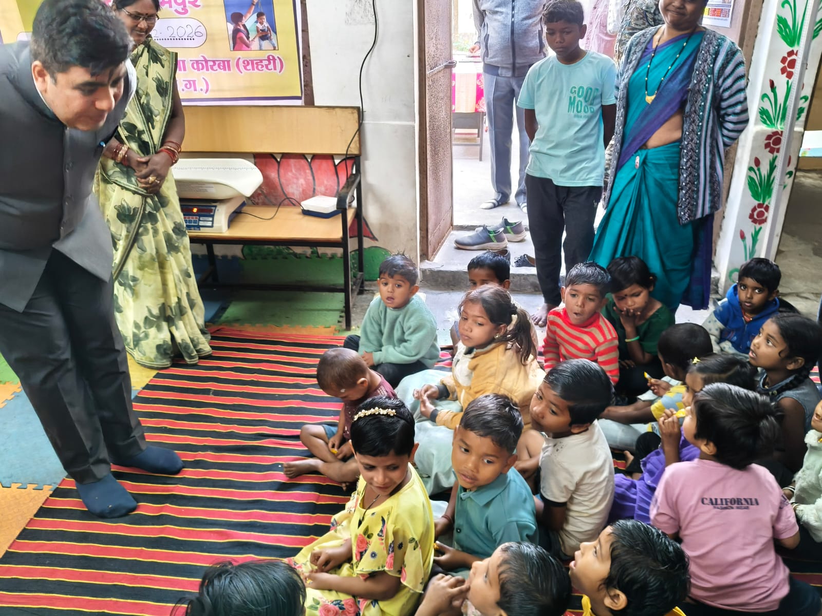 शासन के निर्देशानुसार वजन त्यौहार 2026 का शुभारंभ आज आंगनबाड़ी केन्द्र रामपुर-1, सेक्टर रामपुर, कोरबा (शहरी) में कलेक्टर कुणाल दुदावत द्वारा किया गया। कार्यक्रम में जिला कार्यक्रम अधिकारी बसंत मिंज, वार्ड पार्षद श्रीमती ममता यादव तथा परियोजना अधिकारी मनोज अग्रवाल उपस्थित रहे। कार्यक्रम की शुरुआत केंद्र में उपस्थित बच्चों द्वारा अभिवादन और स्वागत से हुई। इसके पश्चात कलेक्टर श्री दुदावत ने बच्चों से आत्मीय परिचय लिया। बच्चों द्वारा-नींबू देखो गोल-गोल और मछली जल की रानी है जैसी बालगीत प्रस्तुत किए गए, जिससे कार्यक्रम का वातावरण उत्साहपूर्ण और आनंददायक बना।